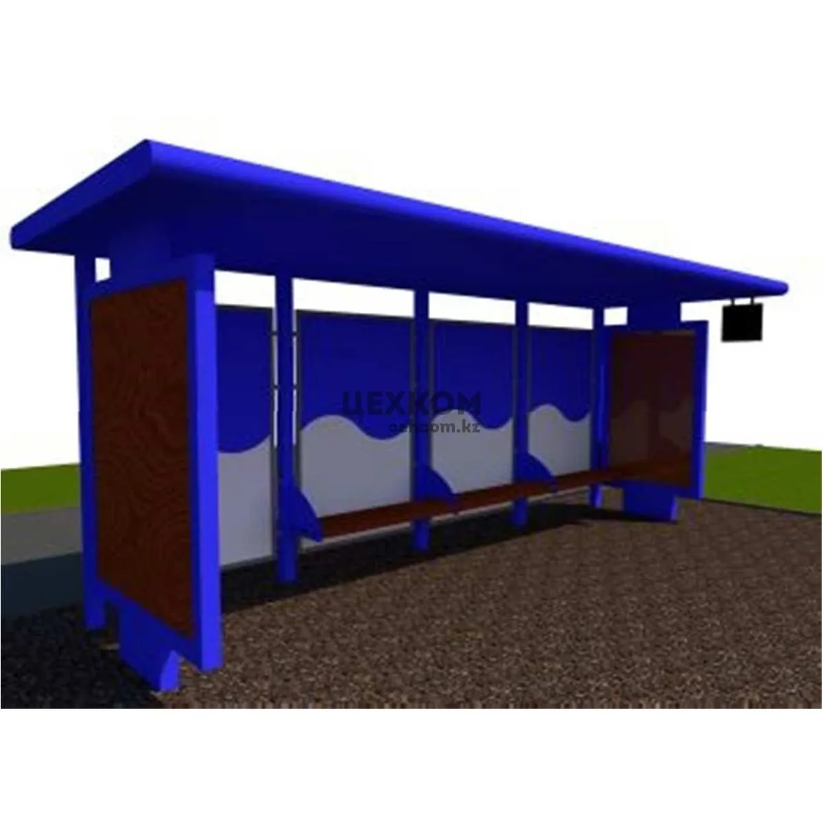 Модульная металлическая конструкция специализированного назначения полуоткрытого типа; каркас – металлический; крыша с металлической обвязкой и обрешеткой, покрытие и подшивка крыши – лист, оцинкованный с полимерным покрытием; заполнение лайт –боксов, указатель маршрута, ограждающие панели – лист, оцинкованный с полимерным покрытием; скамья – деревянная. Габаритные размеры конструкции: длина- 6,0 м; ширина1,646 м; высота-2,5 м; масса- 978 кг