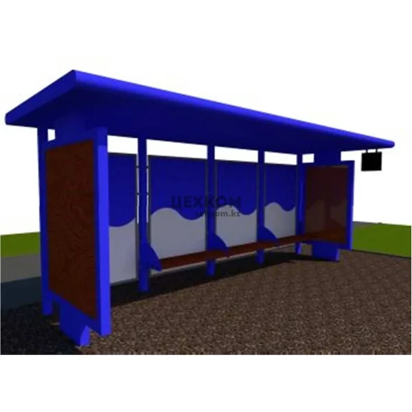 модульная металлическая конструкция специализированного назначения полуоткрытого типа; каркас – металлический; крыша с металлической обвязкой и обрешеткой, покрытие и подшивка крыши – лист, оцинкованный с полимерным покрытием; заполнение лайт –боксов, указатель маршрута, ограждающие панели – лист, оцинкованный с полимерным покрытием; скамья – деревянная. Габаритные размеры конструкции: длина- 4,0 м; ширина1,642 м; высота-2,6 м; масса- 791 кг
