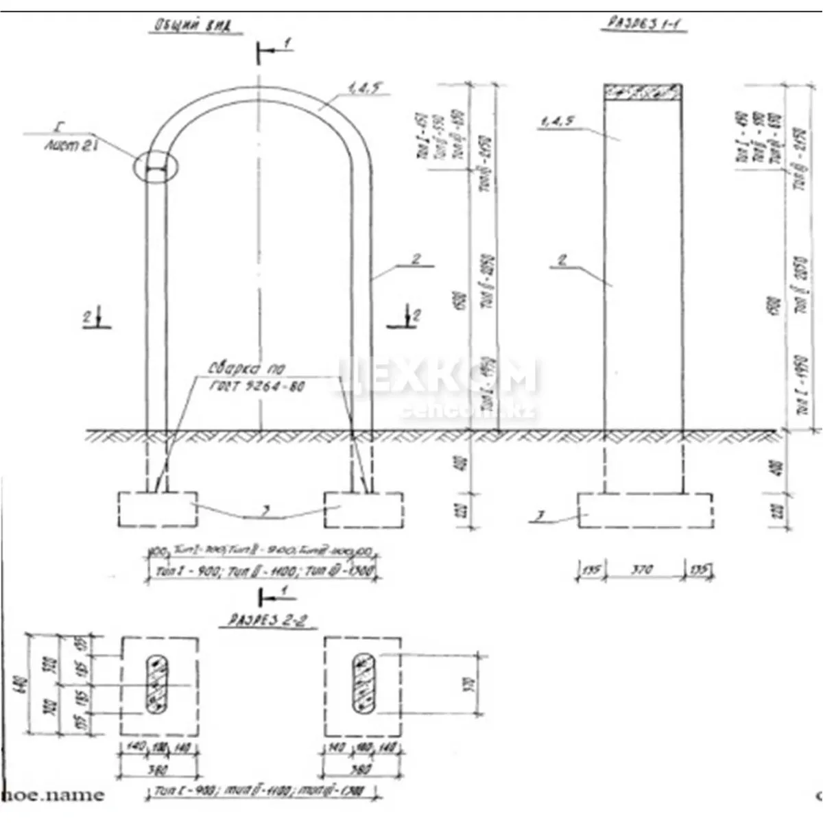 Фундамент сборный железобетонный, сборная железобетонная арочная конструкция. Габаритные размеры конструкции: длина – 0,9 м; высота -1,95 м; масса – 449 кг
