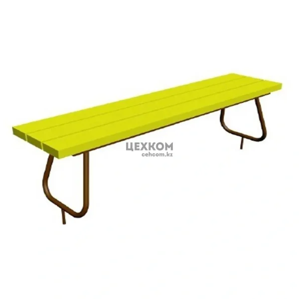 Металлическая конструкция с деревянным сиденьем. Габаритные размеры конструкции: длина-1,67 м; ширина-0,72 м; высота площадки -0,46 м; масса-43 кг