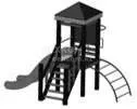 Деревянный каркас; модульная конструкция из окрашенной, влагостойкой, нескользящей фанеры, металлических и пластиковых элементов. Габаритные размеры конструкции: длина- 4,70 м; ширина- 3,50 м; высота башни -2,90 м; высота площадки – 1,0 м; масса-265 кг