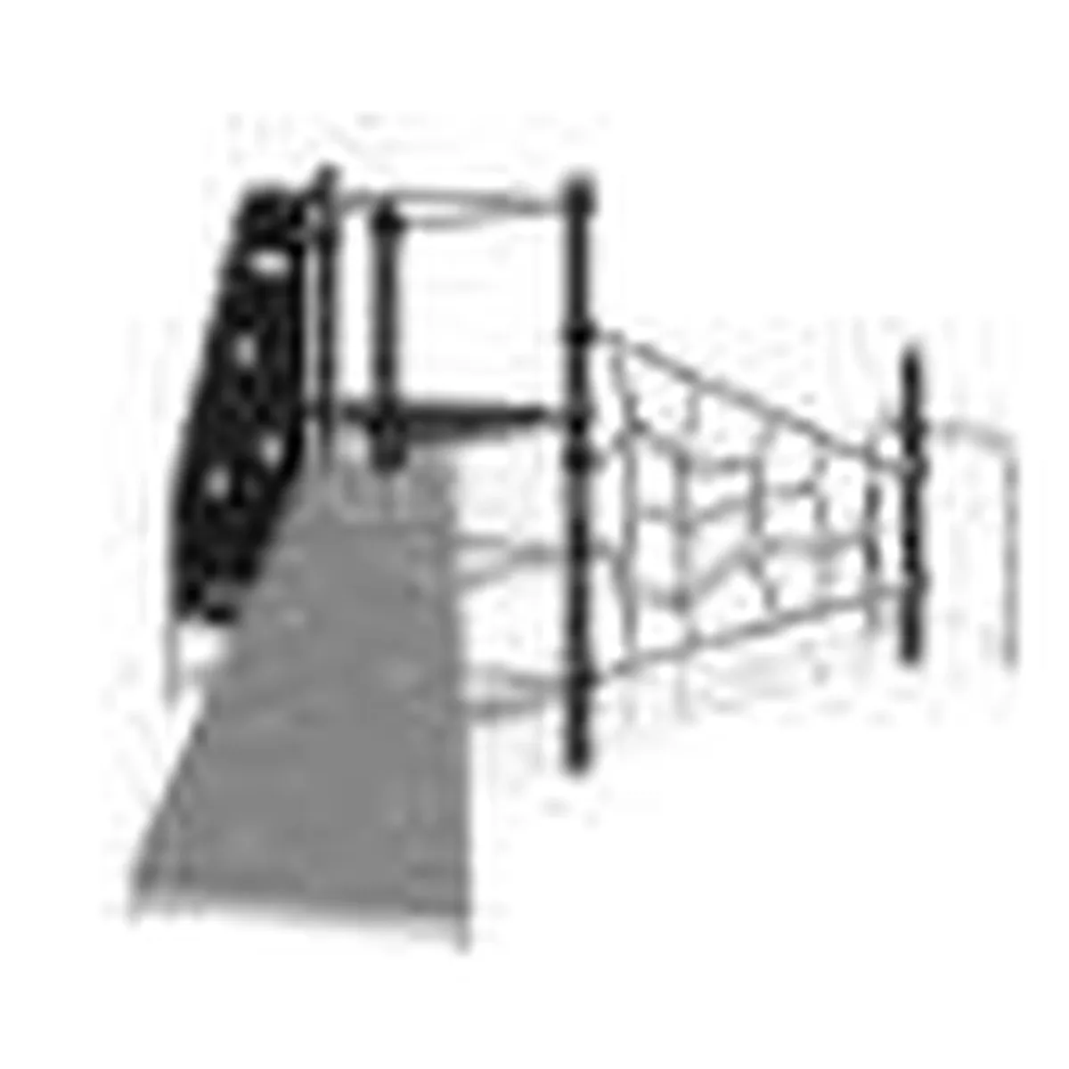 Модульная металлическая конструкция с деревянными и пластиковыми элементами; канатным лазом. Габаритные размеры конструкции: длина- 3,84 м; ширина-2,53 м; высота-2,08 м; масса- 150 кг