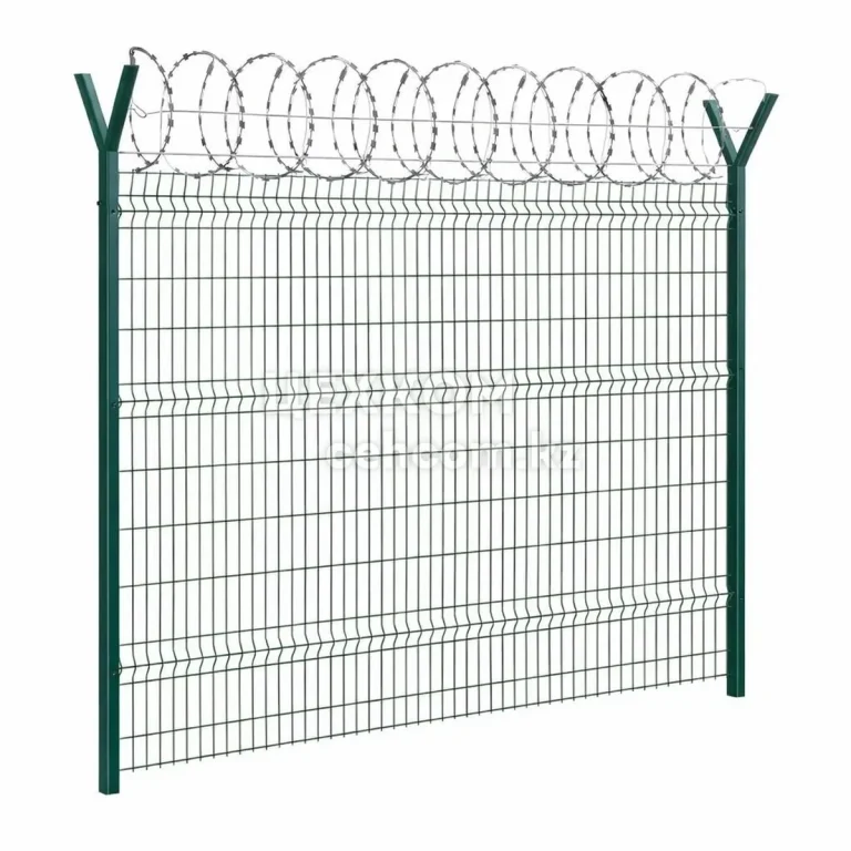 Ограждение из панелей с прутками (d: 5,0 мм), спиральным барьером безопасности и металлическими стойками, тип 3 (УСН 8601-0602-0605)